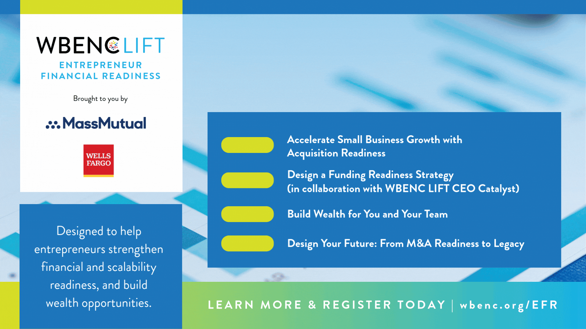As a community of entrepreneurs, corporate executives, and economic development thought leaders, WBENC is committed to the elimination of discrimination in all areas of business and the provision of equal opportunity when accessing capital, contracts, and contacts. In compliance with state and federal laws and regulation, we do not discriminate on the basis of age, color, disability, gender identity or expression, marital status, national origin, race, religion, sex, sexual orientation, or veteran status in any of our policies, procedures, or practices. This anti-discrimination policy covers admission and access to, and treatment, in all programs and activities.
